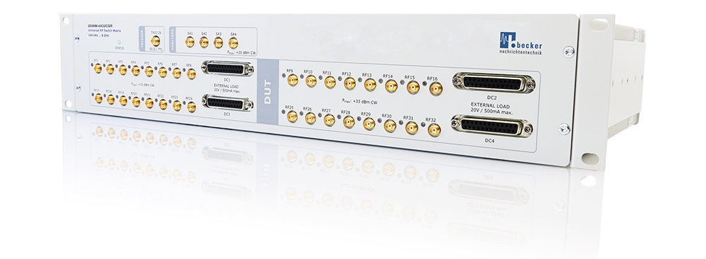 BSWM-4X32CSR 為一款 通用型、阻斷式(blocking)雙向 RF 切換矩陣,適用於多訊號路由應用,常見應用場景包括具備多天線埠待測物之產品驗證測試,例如:車用模組或 MIMO 模組。