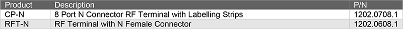 CP-N 為一款具備 8 個埠位的射頻終端模組,專為專業級訊號分配系統設計,實現 SMA 接頭與 N 型接頭之間的轉換功能,此模組為 SR6-11C 系統機架的配套配件,特別適用於結構較厚且較硬的射頻電纜與系統間的連接使用。
