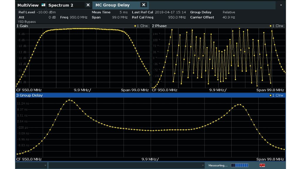 R&S FSW-K17 多載波群延遲量測:在數毫秒內高精度量測絕對和相對群延遲。