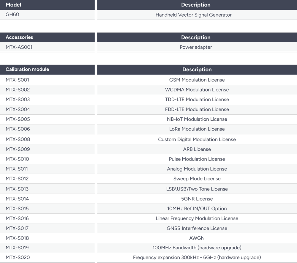 GH-60 手持式訊號產生器完美結合了高效能、高可攜性與高可控性;憑藉其卓越的工程設計,其體積與重量皆可實現單手操作。優異的射頻性能與豐富的訊號產生功能,使其能適用於不同通訊領域的系統整合、研發與製造。基於此高效能平台,本機能滿足絕大多數的訊號模擬需求,並提供客製化的訊號服務。
