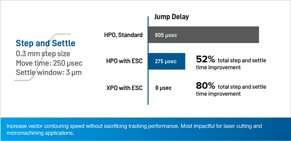 執行步進與整定 (step and settle) 運動時能更快達到穩定狀態,從而最小化或完全消除高頻運動中的跳轉延遲。