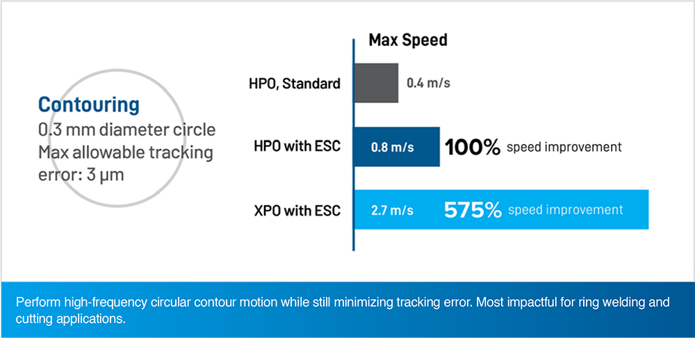 能夠在不犧牲追蹤精度的情況下,以更高的速度執行高頻圓形輪廓運動,這使得焊接、切割和鑽孔等掃描運動輪廓得以加速。