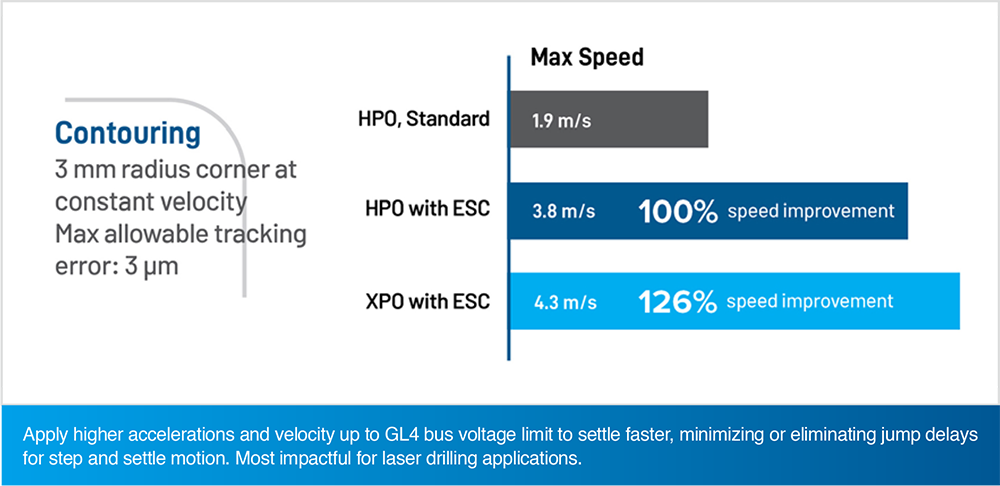 GL4 提供選配的強化掃描器控制 (ESC) 功能,這是一套強大的驅動硬體與韌體配置,當與 AGV-HPO、AGV-XPO、AGV3D 或 AGV5D 產品搭配使用時,能夠對所有運動類型進行即時軌跡優化,對於任何會實質影響掃描器產能的運動輪廓,此功能都能帶來顯著的產能提升。