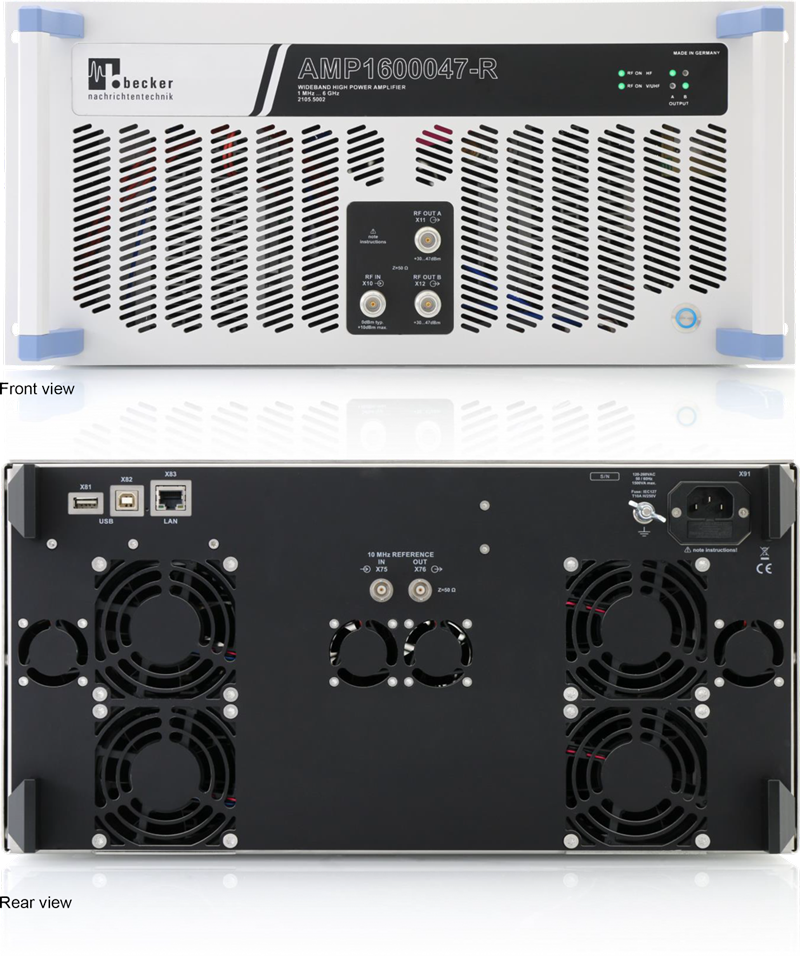 iAMP1600047-R 為一款小型化採用半導體技術的固態功率放大器,內建連續波/脈衝產生器,具備最高 50 W 輸出功率,可同時用於兩個輸出埠,前提為其中一個埠用於短波頻段(1~30 MHz),另一個則需用於不同的頻段;其總可用頻率範圍為 1 MHz 至 6 GHz;使用者可選擇固定增益模式或自動電平控制模式(ALC),在 ALC 模式下,iAMP1600047-R 能直接且精確地提供所需輸出功率等級,且幾乎不會隨時間產生漂移。