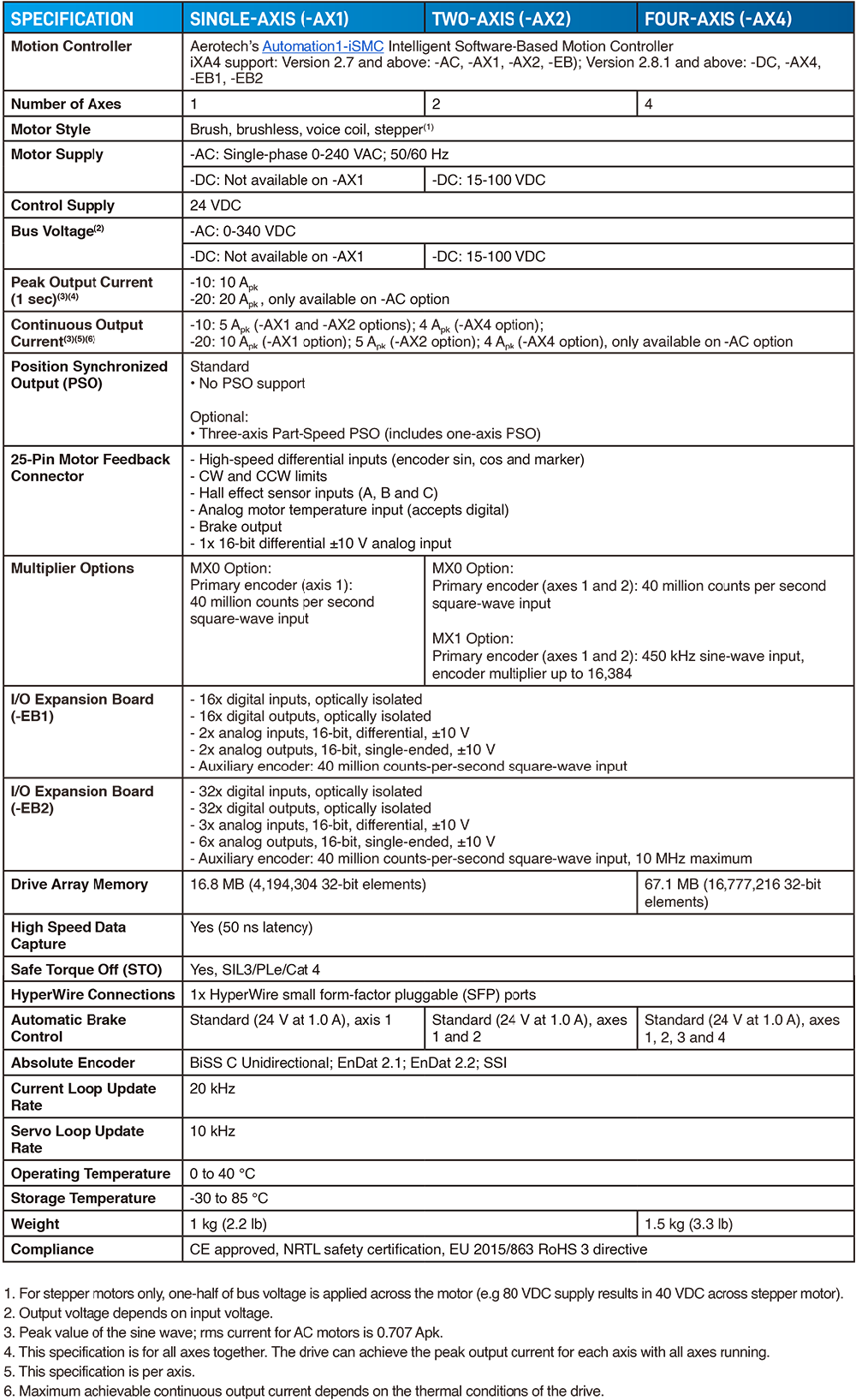 作為一個多功能驅動器,iXA4 支援多種回授裝置類型,其內建放大器可控制無刷交流、有刷直流、音圈與步進馬達,並提供最高 340 VDC 工作電壓與 20 A 峰值電流的驅動能力。
