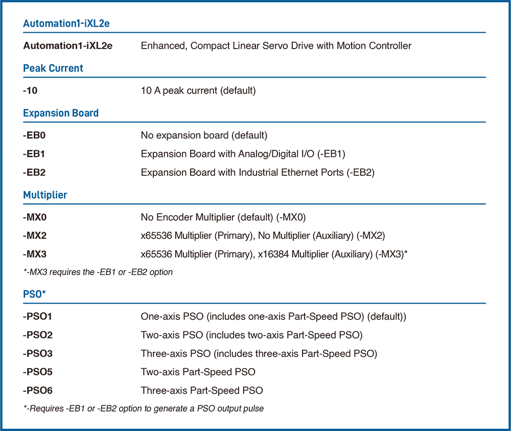 iXL2e 不僅是一款運動控制裝置,更整合了多種製程控制功能,藉由其 PSO 功能,單軸 iXL2e 便能即時追蹤多達三個編碼器,用以觸發如工業雷射或相機等製程工具,每台 iXL2e 皆可選配 I/O 擴充板,此擴充板包含一個專用的 PSO 輸出埠,且 PSO 功能可搭配同步輸入,讓製程控制與外部的鎖模頻率輸入同步,該機種亦內建一組 24 伏特、1 安培的制動器輸出,此裝置已通過 CE 認證、NRTL 安全認證及 EU 2015/863 RoHS 3 指令認證,其功率放大器頻寬可透過軟體進行選擇與設定。