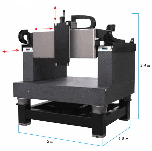 這款龍門系統專為重負載設計,橫軸具有寬廣的承載範圍,在垂直與水平運動中能全面支撐負載,有效降低幾何誤差運動 (Geometric Error Motions);此外,橫軸可轉換為直驅系統 (Direct Drive Axis),實現全方位 2 微米 (2 µm) 的高精度移動,滿足極高精度應用需求。