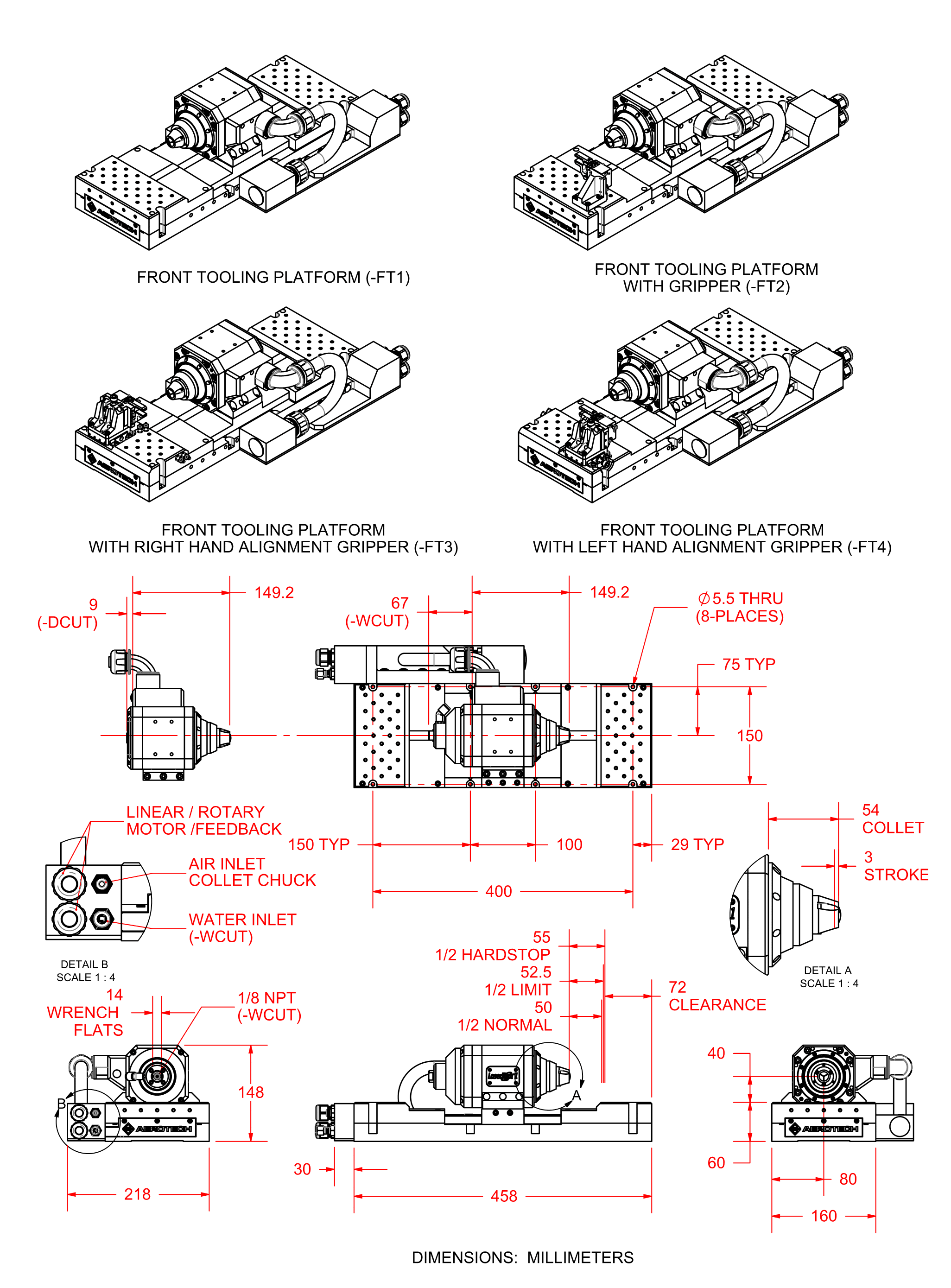 • 氣動驅動夾頭支援 0.1 mm 至 7.9 mm 外徑材料,配備無摩擦旋轉接頭