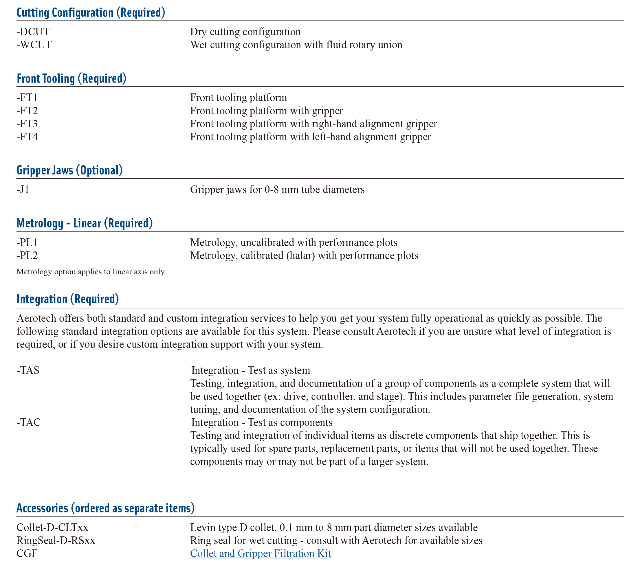 LaserTurn1 是一個完整的運動與材料處理子系統,包含一個自動化、氣動啟動的 Type D 夾頭閉合裝置;夾頭具有清晰開口以方便產品進料,乾式切割時可支援從 0.1 mm (0.0039 英吋) 到 7.9 mm (0.3125 英吋) 的管徑,濕式切割配置時則支援最多 3 mm (0.118 英吋);此夾頭設計能在夾緊操作期間最小化軸向管件移動,藉由保持夾頭靜止,並在開合操作時移動錐形接觸面。