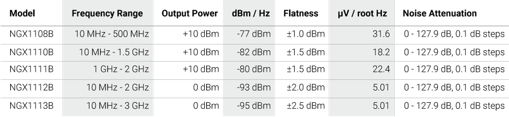 該產生器的所有功能均可透過 5 吋觸控螢幕操作,或透過乙太網路連線進行遠端控制,提供靈活且可程式化的雜訊產生能力,廣泛適用於半導體、軍事、航太、衛星、醫療及通訊等應用領域;NGX1000 可在 10 MHz 至 3 GHz 頻率範圍內產生雜訊,並在整個頻段內具有卓越的平坦度;此外,使用者可選擇 0 dB 至 127.9 dB 的衰減,並以 0.1 dB 為步進進行調整,雜訊輸出透過 N-type 連接器,可快速直接連接至測試中的裝置或系統。