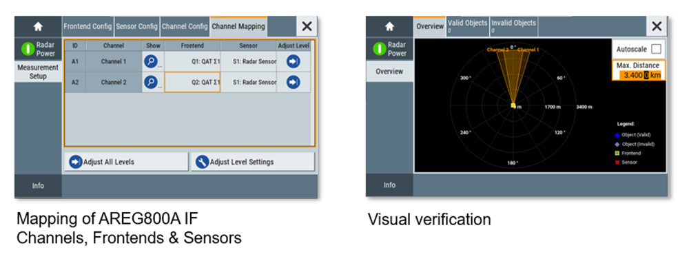 透過 R&S AREG800A 的圖形化介面,使用者可以直觀地監控由 QAT100 產生的多個獨立目標及其方位角分佈。