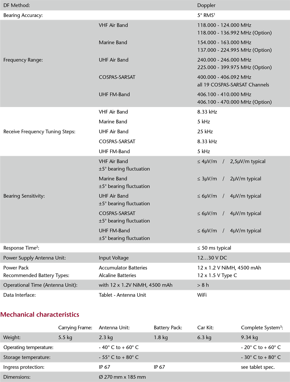 - 便攜式測向系統,適用於搜尋與救援行動 (SAR)、執法機構及無線電干擾源定位