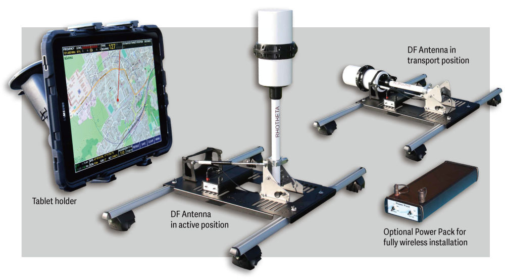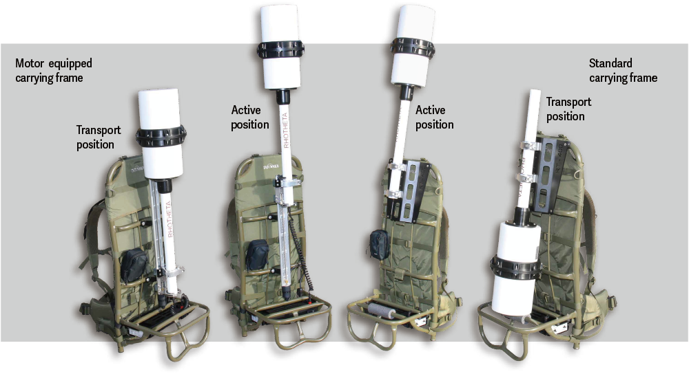 RHOTHETA 測向系統同樣可安裝於地面車輛上,此外,亦提供可背負的測向系統,使搜救人員能夠攜帶設備前往車輛無法通行的區域,提升搜尋與救援任務的靈活性與效率。
