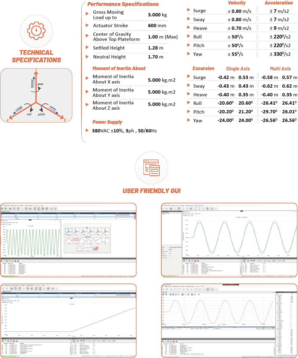 SMotion3000 是一款最先進的 6DOF 運動平台,專為高精度運動控制設計,適用於各類高科技應用,其最大承載能力達 3000 公斤,適用於多種產業需求。