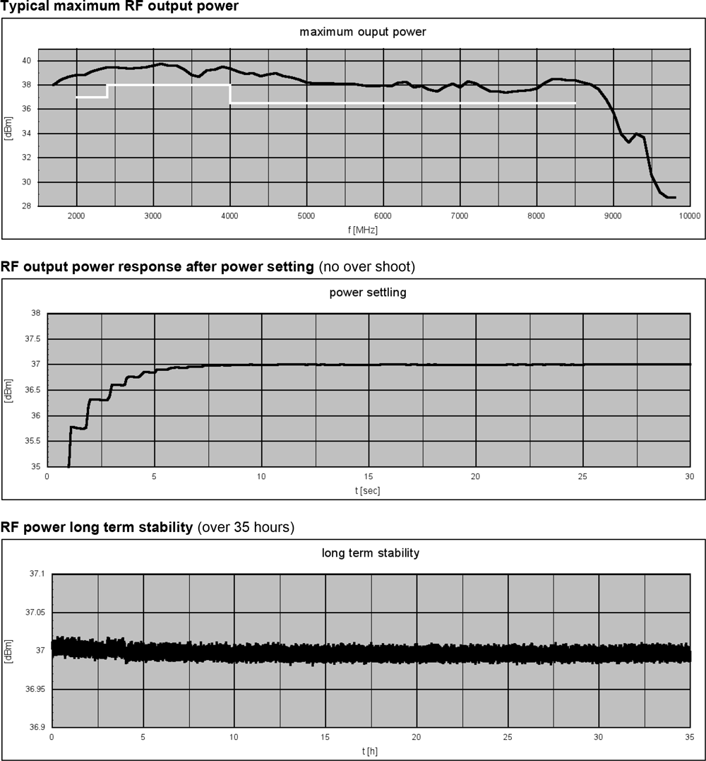 每個輸出通道皆支援封閉迴路功率控制(ALC),可提供極高精度的 RF 輸出功率,且幾乎無可見功率階躍變化,因此,不僅能保證 8 個通道間輸出對稱性,也可確保長時間運作下的穩定性;此外,平滑的控制迴路響應特性亦可有效避免功率超衝現象(overshoot)。