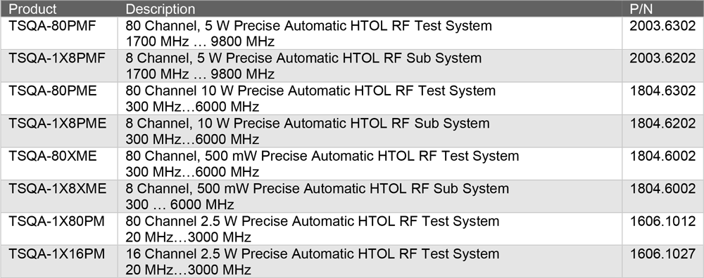 此系統同時提供 8 個輸入通道,可即時監控每個 DUT 的輸出功率狀況,標準機型配備內建 CW 連續波射頻訊號源,並整合控制軟體,能夠全自動執行整套測試流程,特別適用於如半導體、SAW/BAW 濾波器與 LTCC(低溫共燒陶瓷)等電子元件之量產或壽命測試需求;憑藉其寬頻覆蓋能力,TSQA-1X8PMF 亦適用於支援 5G(FR1 頻段)與 Wi-Fi 6E 標準相關元件的量測應用。