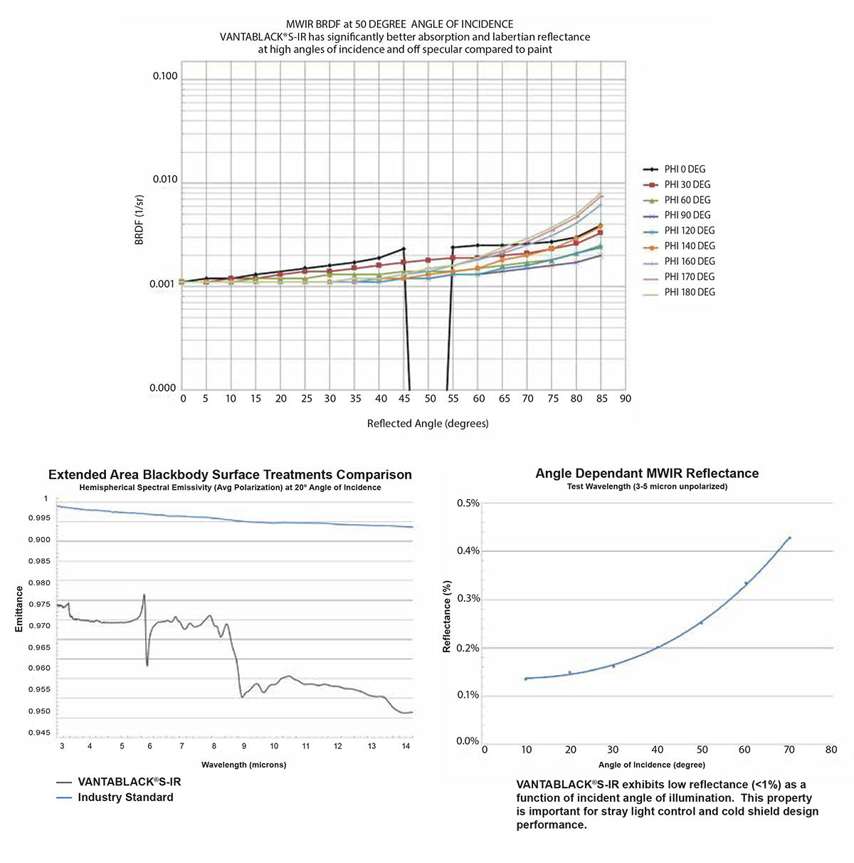 SBIR (Santa Barbara Infrared) 獨家 VANTABLACK® S-IR 黑體輻射源,具備領先業界的發射率與輻射量測精度,特別是在大面積黑體輻射源領域樹立了新標竿;此系列輻射源的核心在於其發射板,其上塗佈了運用碳奈米管 (CNT) 技術的特殊塗層,能極有效地吸收和捕捉光線。