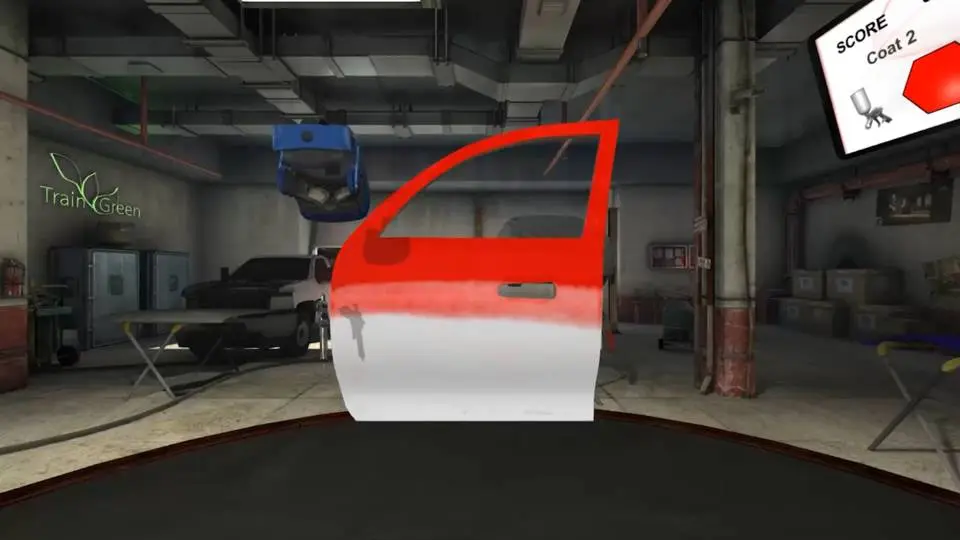 學員可在逼真的汽車維修廠環境中,練習車門塗裝技巧,透過即時回饋精進塗料施作能力。