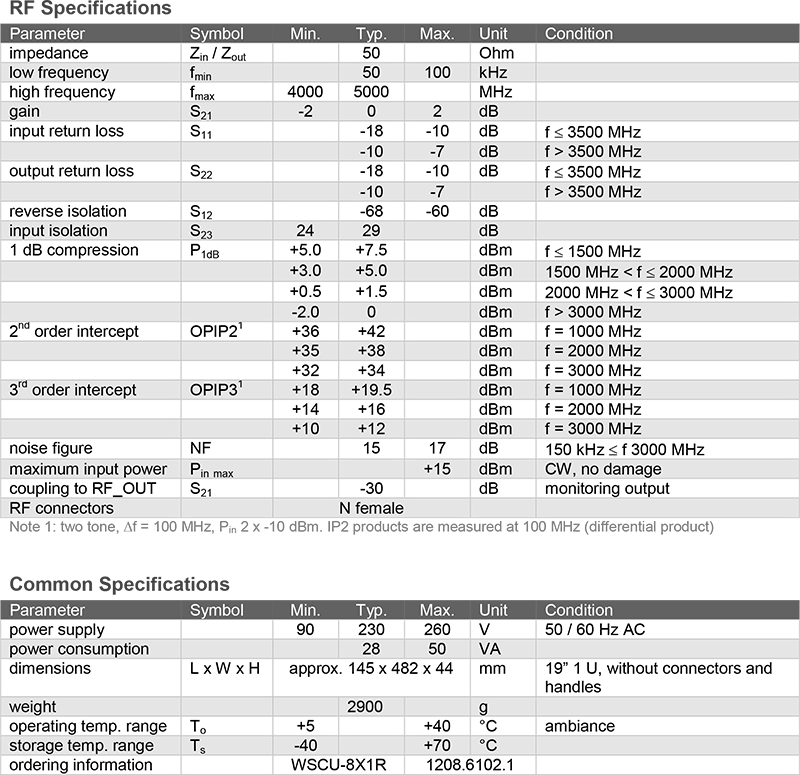 WSCU-8X1R 為一款寬頻高動態射頻合路器,可將最多 8 路訊號源(如射頻產生器或天線訊號)合路至一個共用輸出埠;其涵蓋頻率範圍自 100 kHz 至 4000 MHz,可支援從長波至 UHF 的廣播與通訊應用,適用於研發、最終測試與接收系統等多元場景。