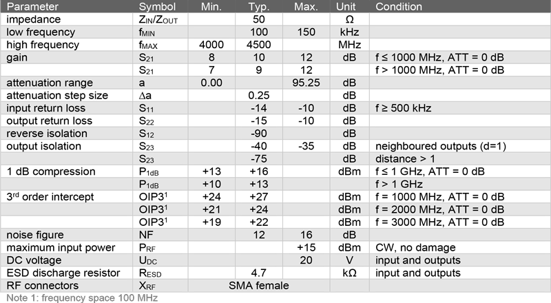 此模組每一輸出埠皆配備可程控衰減器,其衰減範圍高達 95.25 dB,可以 0.25 dB 為步進進行微調,並可獨立設定各通道電平,滿足各種精細調整需求,是進行多設備同步測試時的理想選擇。