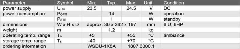 WSDU-1X8A 為一款寬頻訊號分配模組,內建具可程控衰減功能的主動式多工耦合器(Multicoupler),可針對每一路輸出獨立設定訊號電平,實現高動態範圍調整,模組支援 100 kHz 至超過 4000 MHz 頻率範圍,提供 8 埠等效輸出;每一輸出路徑皆具獨立可調特性,可依不同應用需求精細調整;本模組採插槽式設計,可直接整合至 SR6-11C 系統平台中。