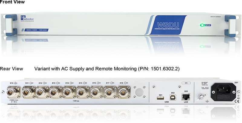 此機種 WSDU-1X8ER 為專為大規模訊號分配系統所設計的射頻分配器,可將單一輸入訊號分配至八個輸出通道;其具備高動態範圍與極寬頻頻率支援能力,涵蓋 20 MHz 至 8000 MHz,亦提供支援LAN(乙太網路)與 USB 遠端監控功能之版本,適用於需進行集中監控或多點分配的系統架構;此外,其頻率範圍涵蓋最新無線通訊標準,包含 Wi-Fi 6E,可因應未來技術部署需求。