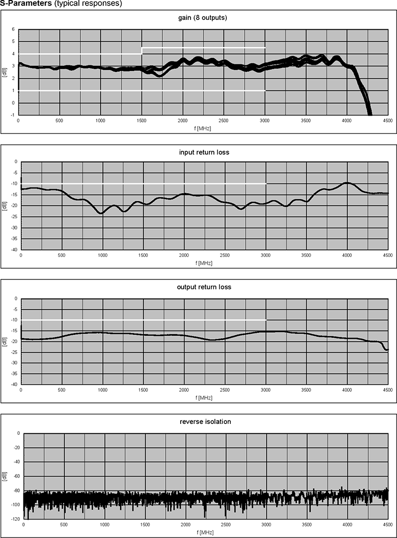 此機種透過內建的寬頻低雜訊放大器,將輸入訊號線性放大後,無損地分配至八組等效輸出,即便微弱訊號與高功率訊號並存,亦能維持良好線性度;硬體結構提供優異的相位與增益平衡,所有埠口皆採用 N 型母頭。