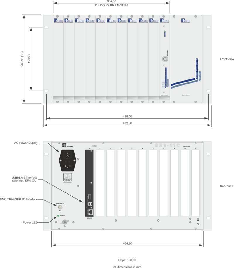 WSDU-1X8S 支援與 SR6-CU 控制模組整合,透過標準 USB 與 LAN 介面進行遠端控制,指令格式採用 SCPI 標準,並支援待機節能模式。此模組預設整合於 SR6-11C 系統平台,平台共配置 11 個插槽,支援 RF 切換器、多工耦合器、BIAS-T、分配器等模組協同運作,適用於通訊監控、電磁訊號監測、接收測試、天線訊號分配等應用。
