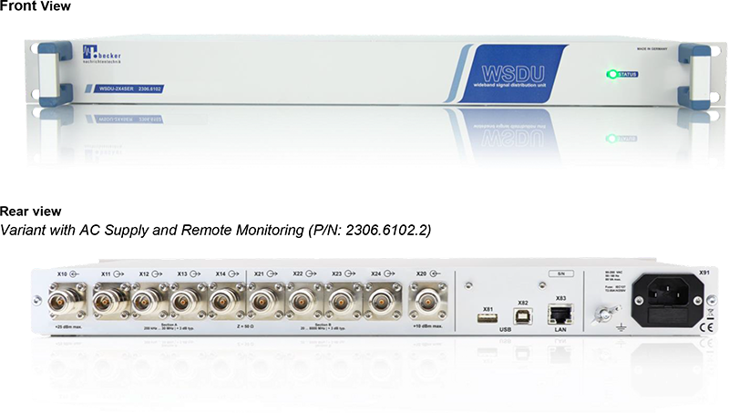 WSDU-2X4SER 採用雙區段獨立運作架構,每區段可將單一 RF 輸入訊號分配至四組輸出,具備高線性、高穩定度與超寬頻處理能力。
