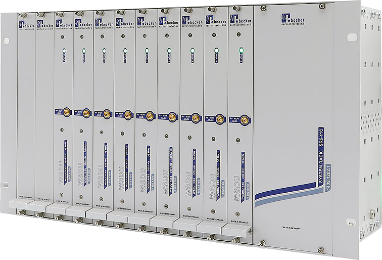 WSDU-9C1X8S 為一款 9 通道高頻訊號分配單元,專為專業短波接收系統中的訊號分配應用所設計,裝置採用模組化插槽架構,可安裝於標準 19 吋系統平台,具備高度整合與可擴展性;各插槽模組(WSDU-1X8S)透過平台內部背板供電,無需額外外部配線,大幅簡化佈線與系統整合作業;射頻(RF)輸入與輸出埠配置於模組背面,可自系統機架後方直接存取,提升安裝與維護效率;模組前側另設置 RF 監控埠(Monitoring Port,便於即時量測與診斷。